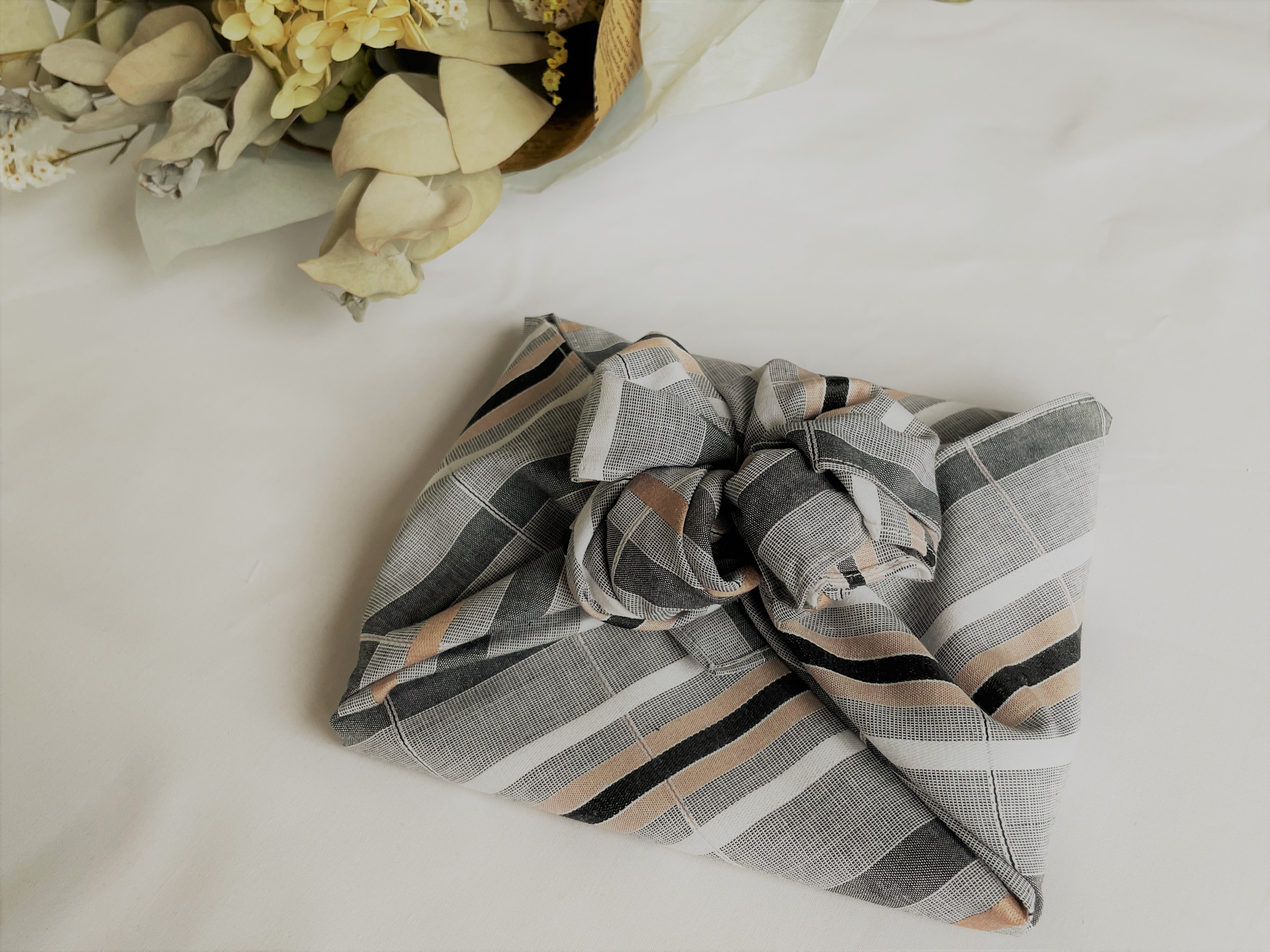 グレーベースにブラック×ホワイト×ベージュのラインが入ったストライプ柄のふろしきです。