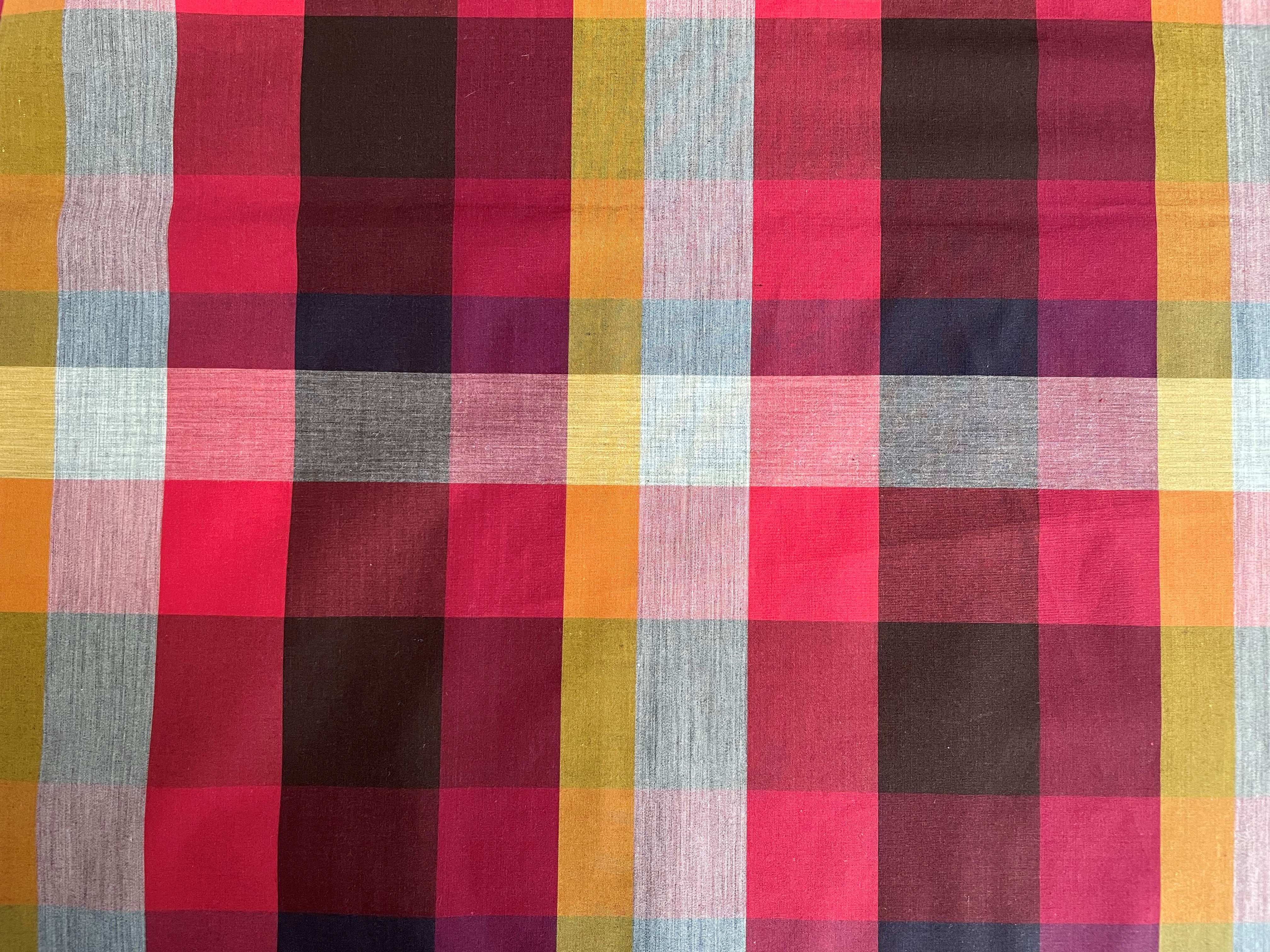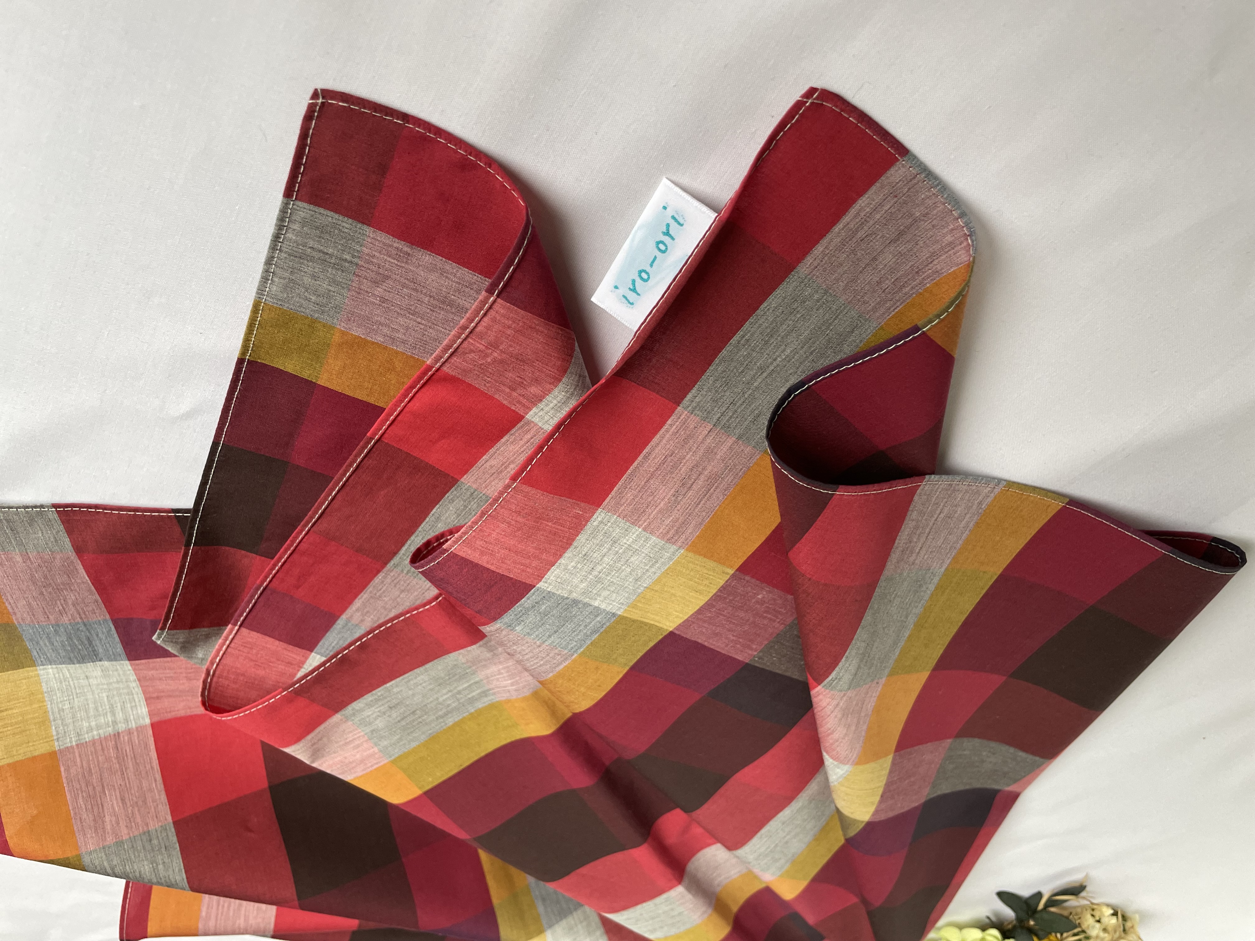 レッドベースにイエロー×ホワイト×ワインレッドのラインが入ったチェック柄のふろしきです。