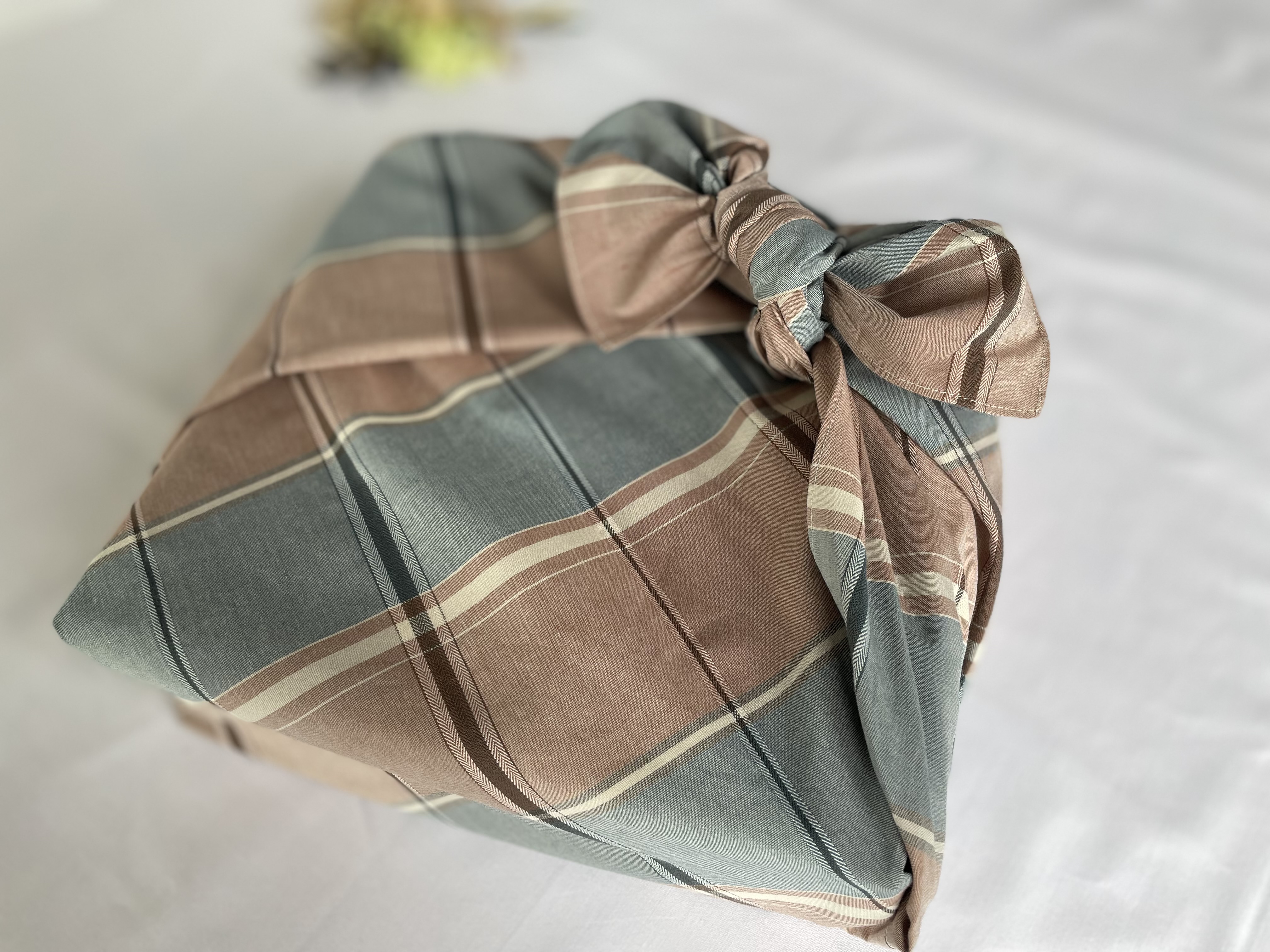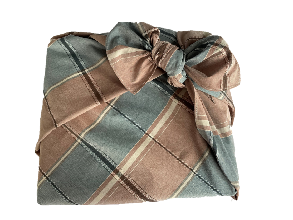 ブラウン×カーキ×ホワイトのラインが入ったチェック柄のふろしきです。