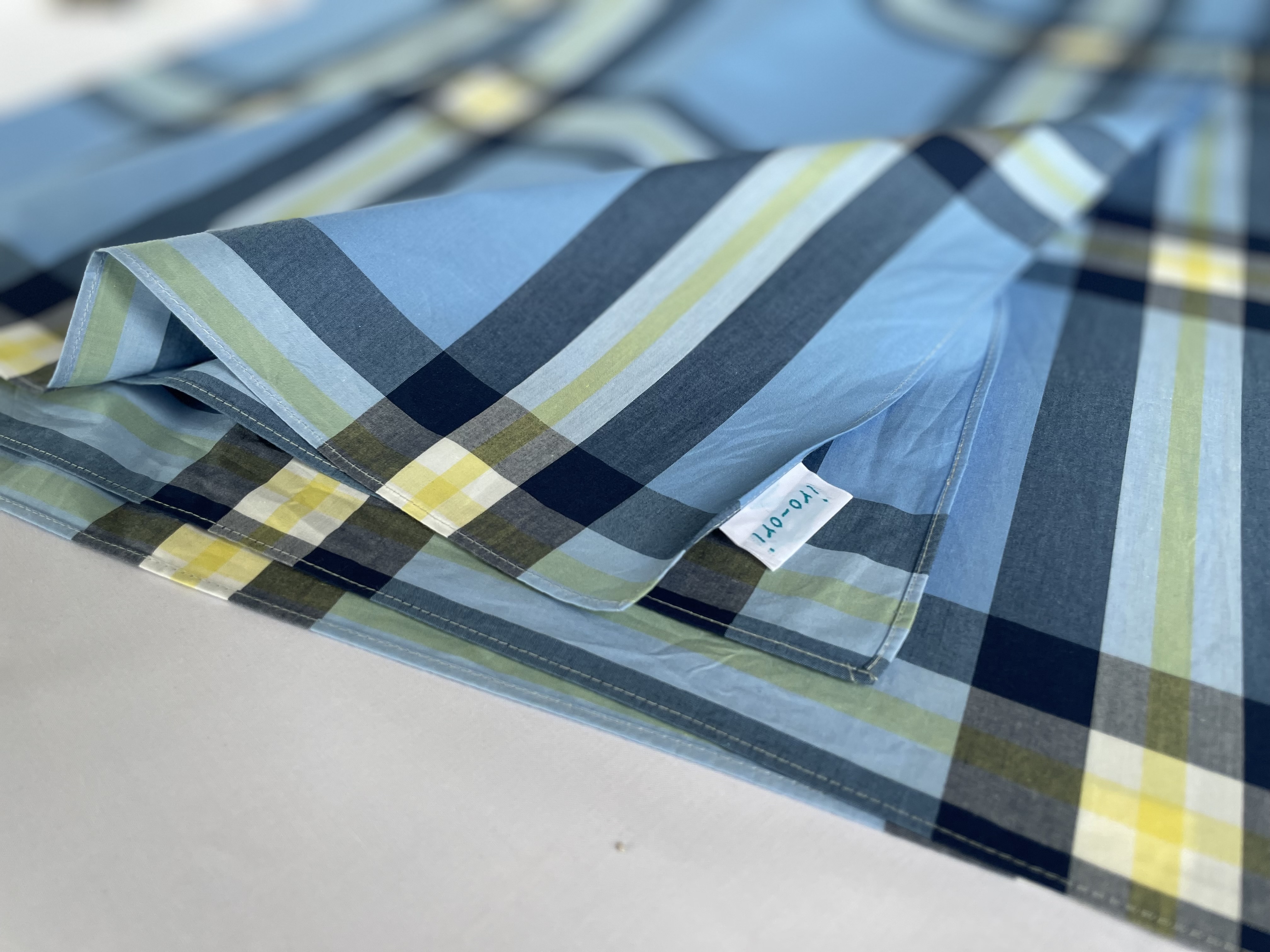 210916【播州織ふろしき スカイブルー×イエロー・チェック大柄】100×100cm