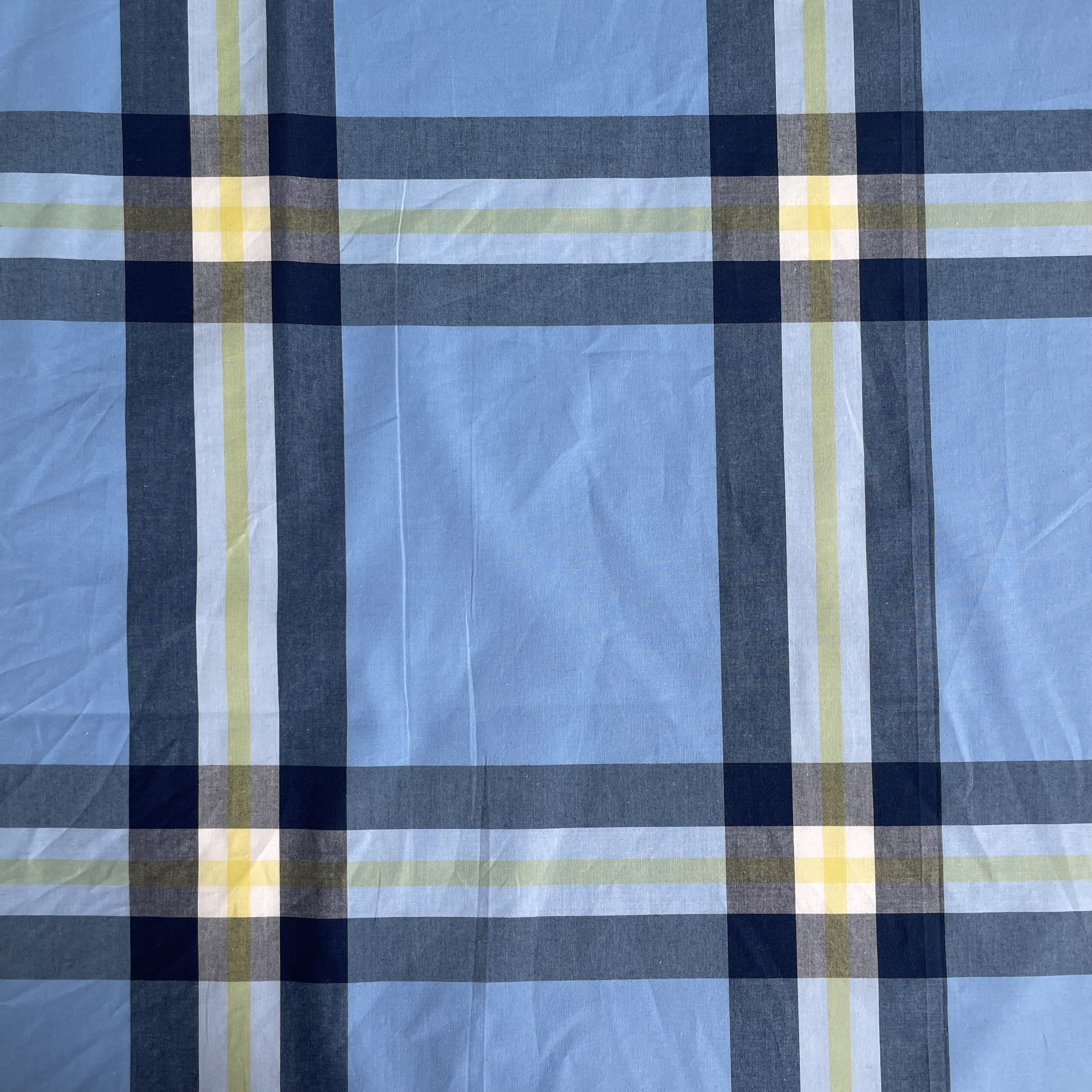スカイブルーベースにイエロー×ブラックのラインが入った大きなチェック柄のふろしきです。