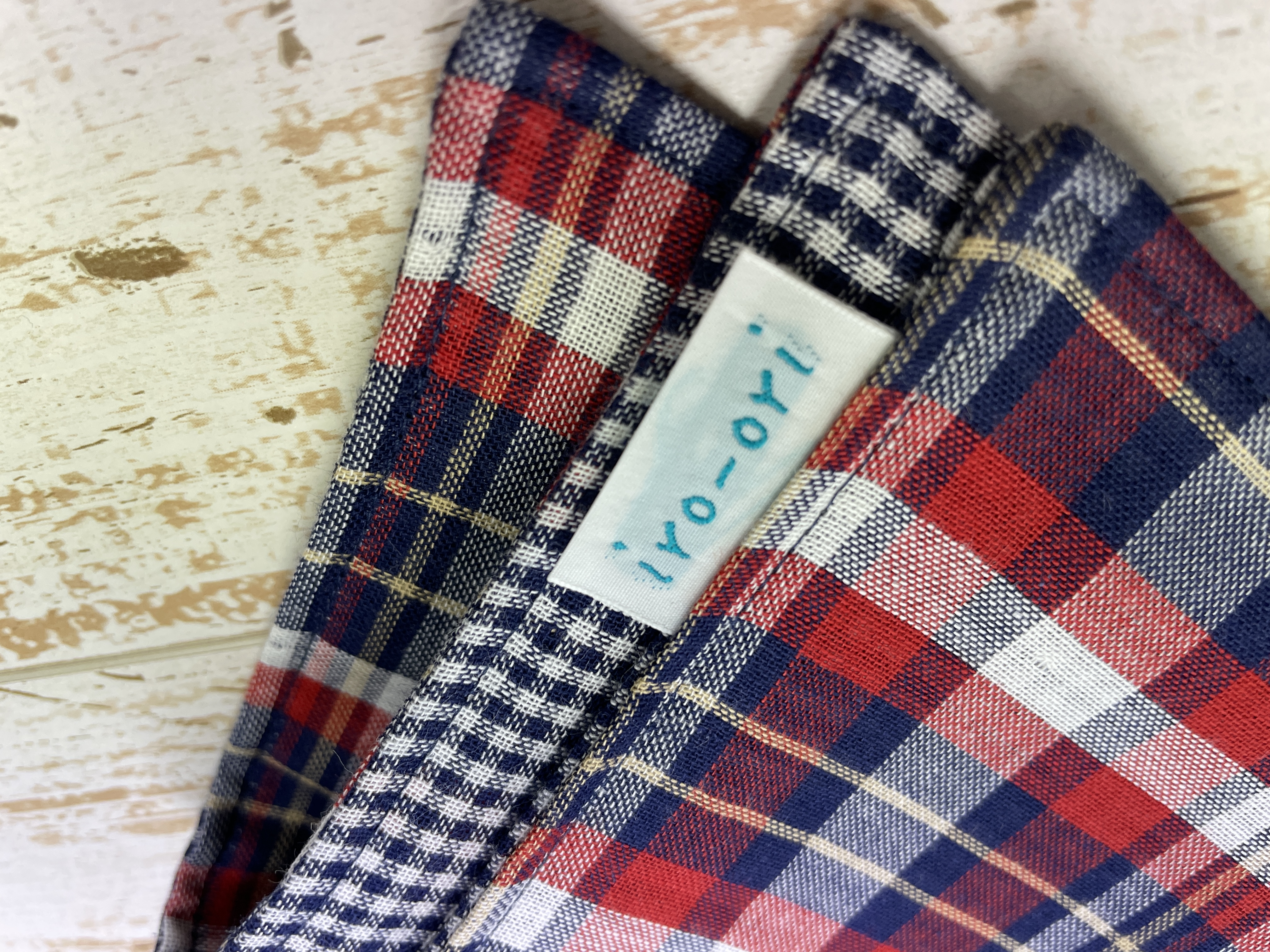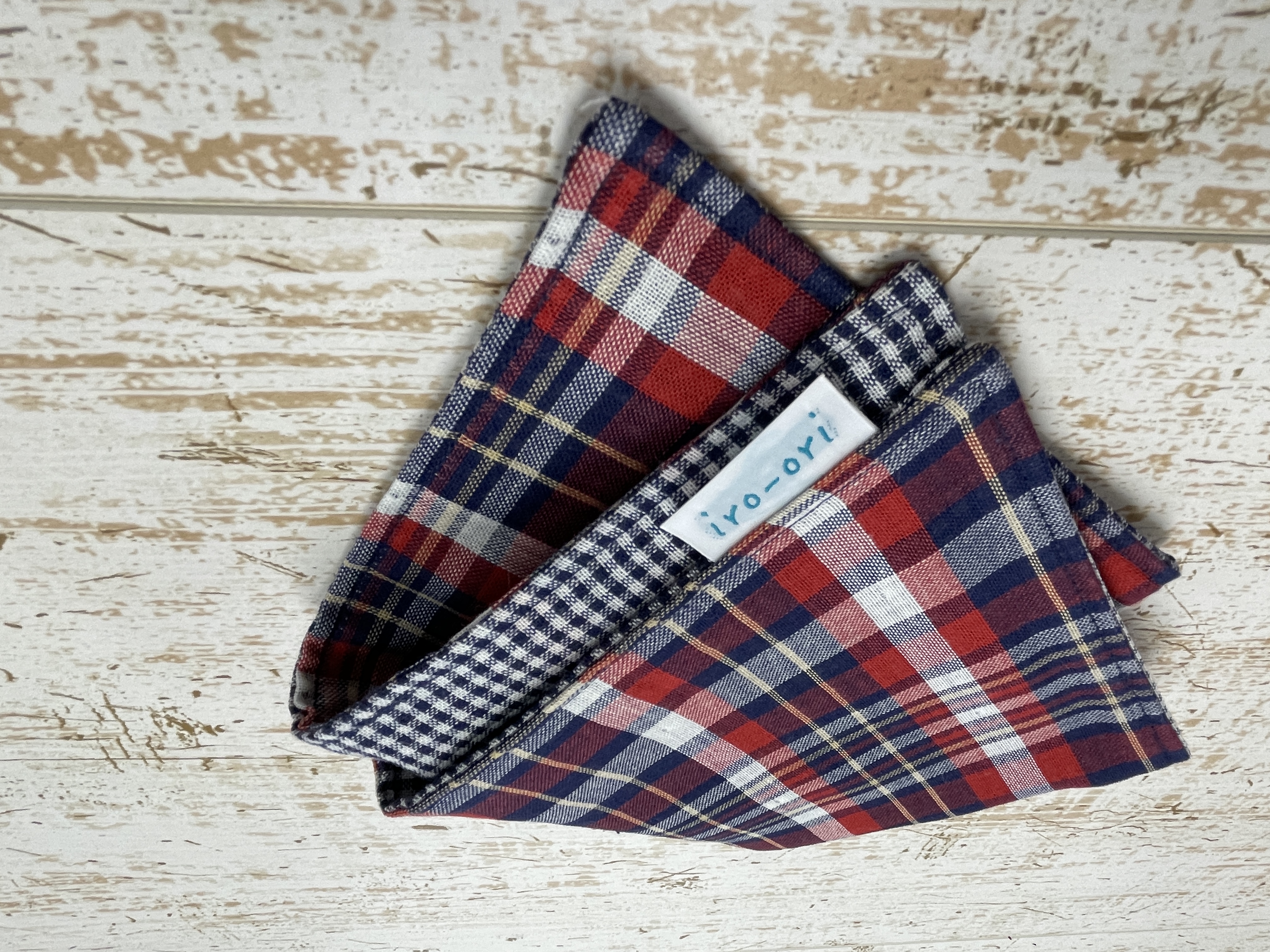 表の柄はネイビー地にレッド×ホワイトのチェック柄。