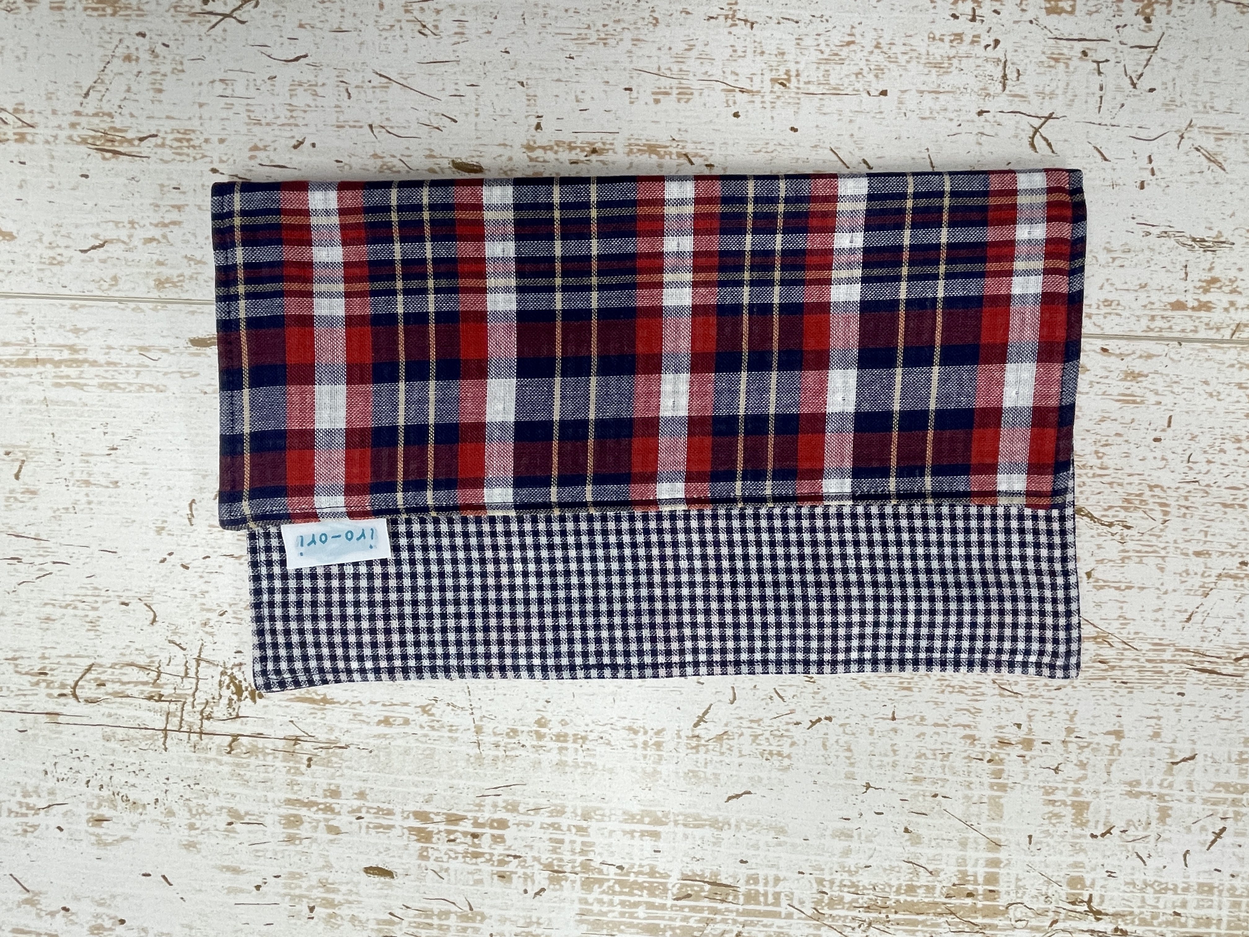 230203【ミニガーゼはんかち ネイビー×レッド×ホワイトチェック柄】