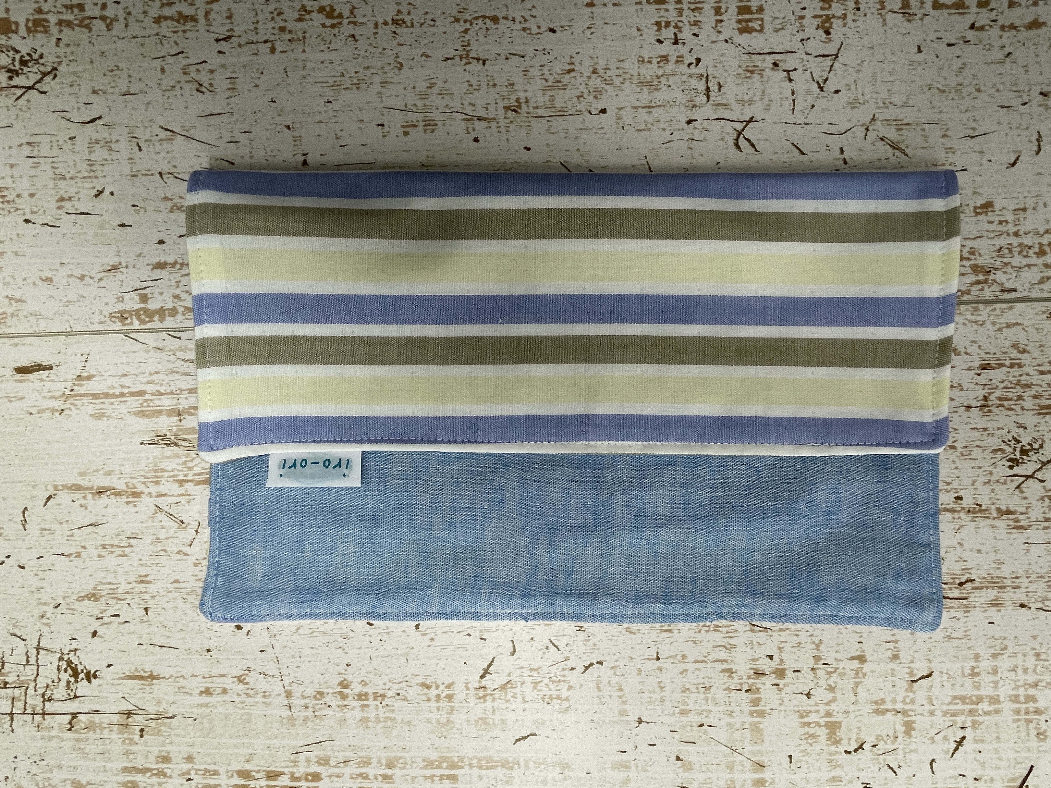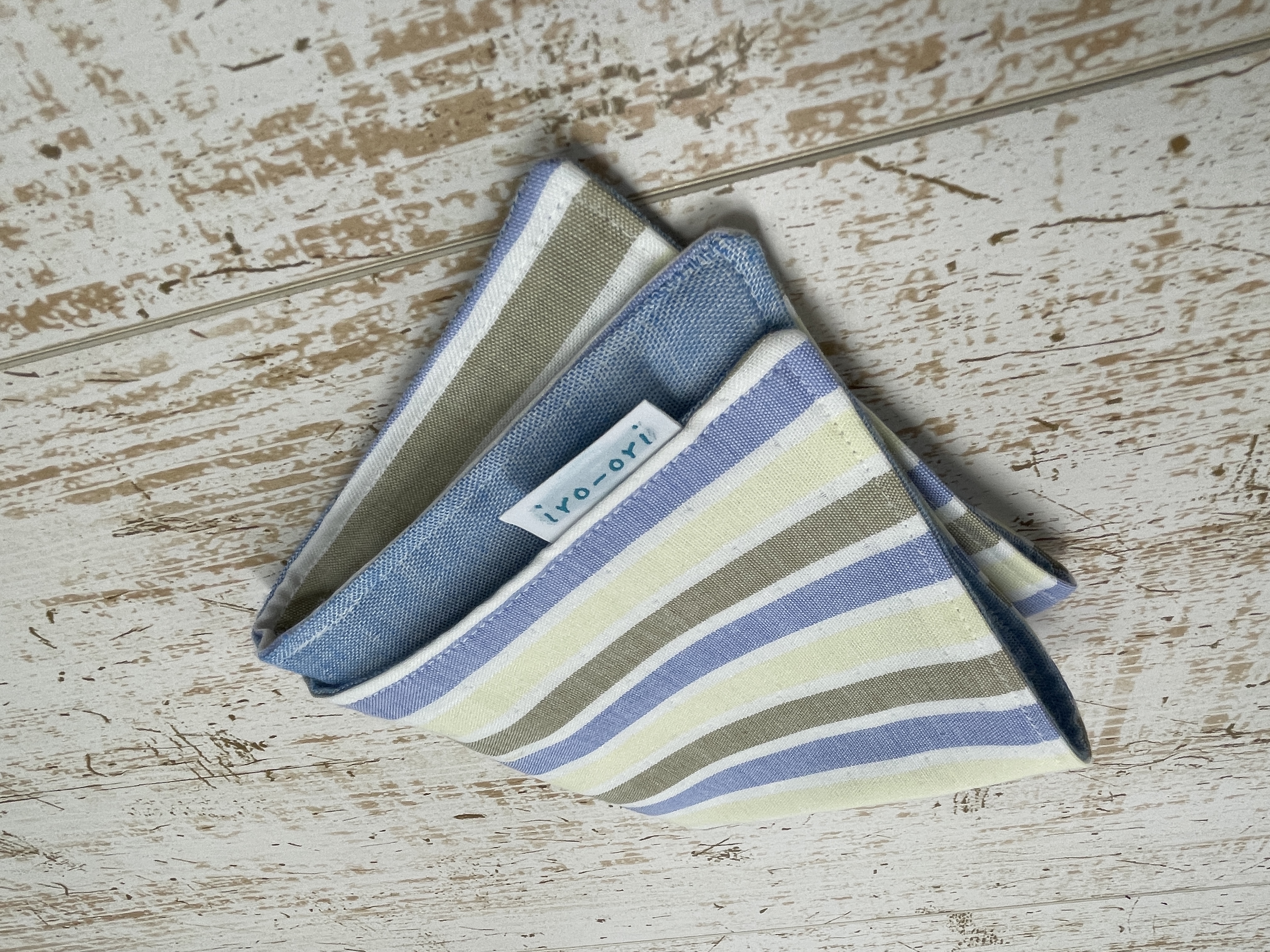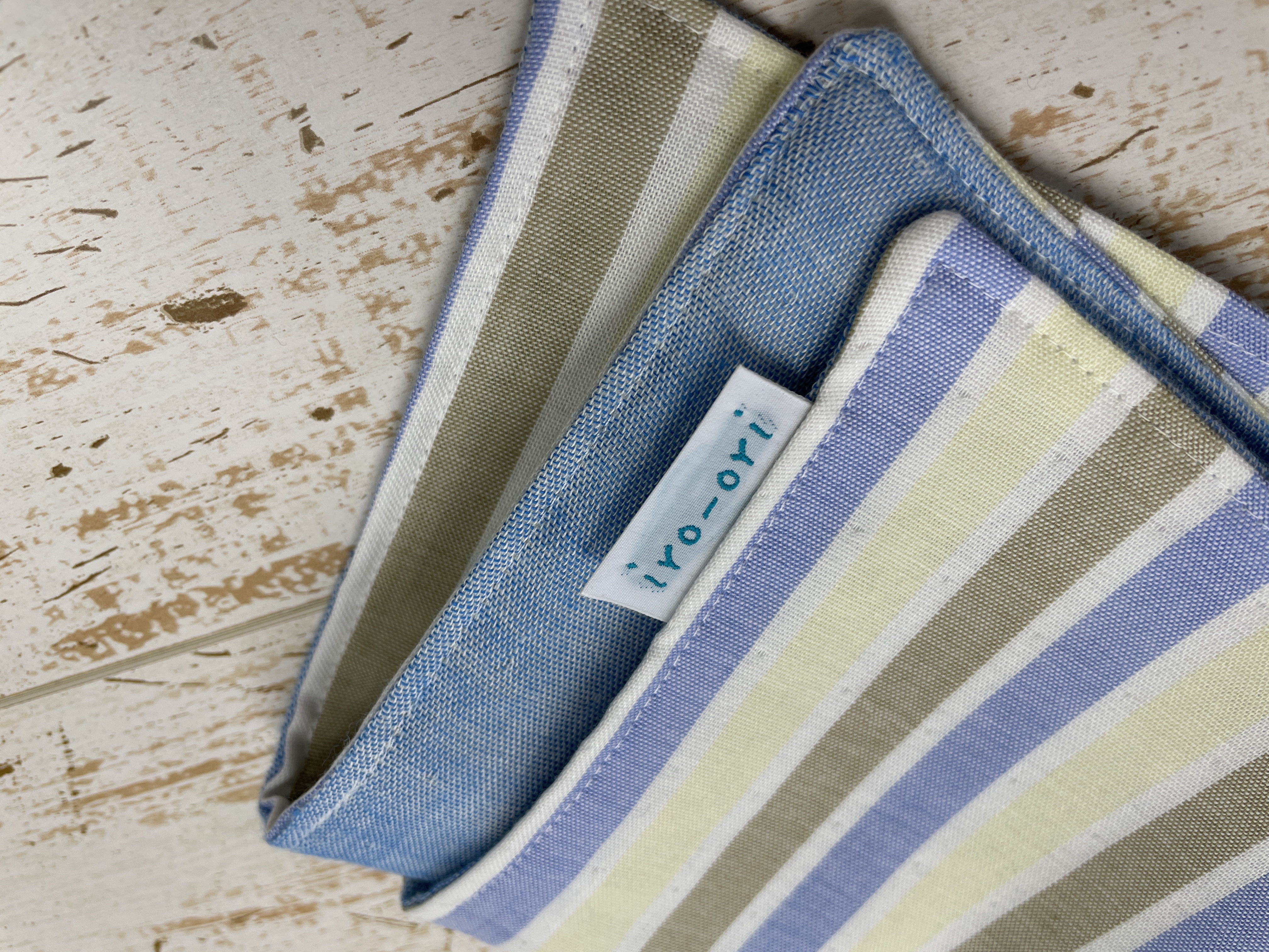 表の柄はレモンイエロー地にブルー×ブラウン×ホワイトのストライプ柄。
