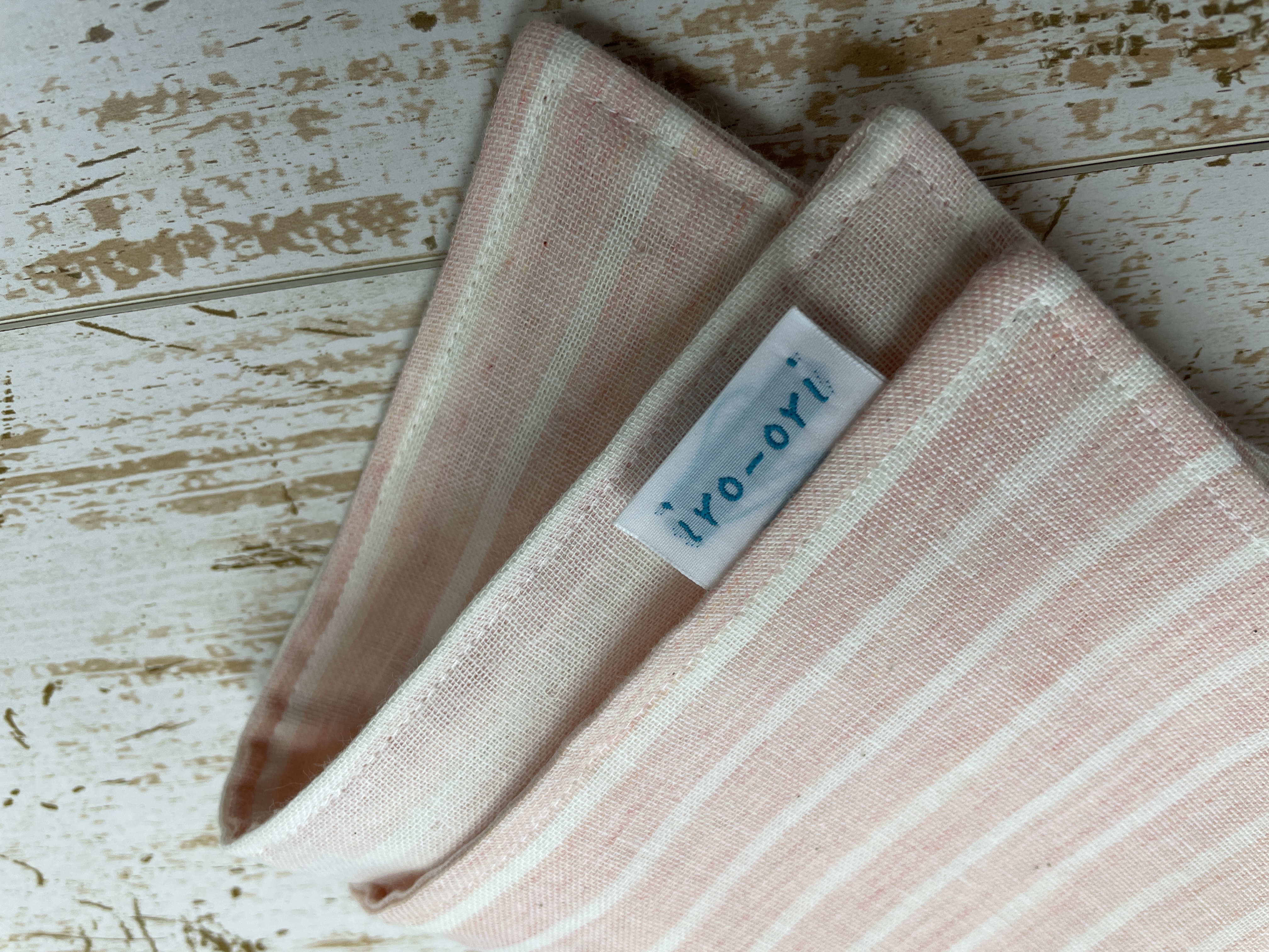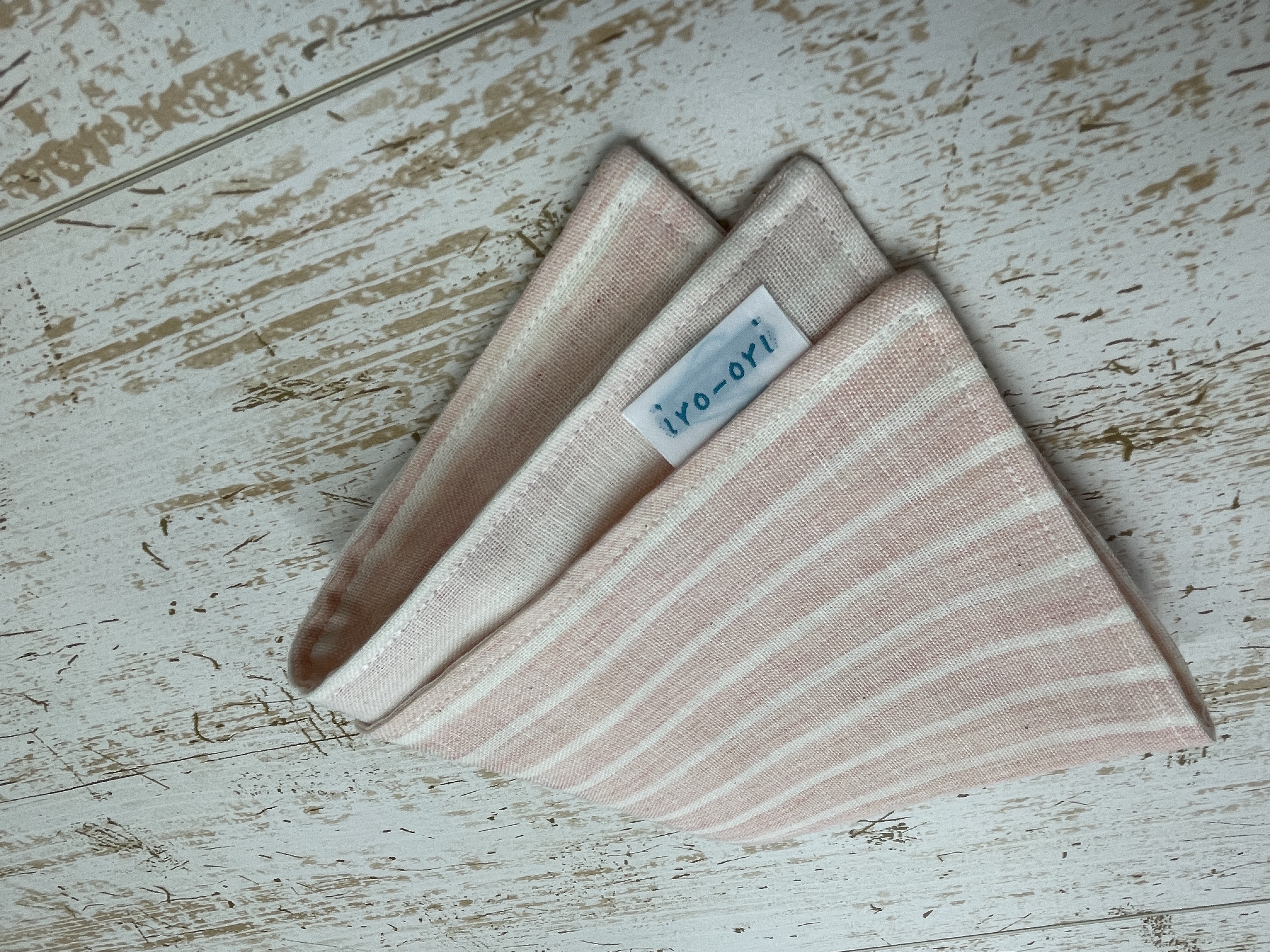 230206【ミニガーゼはんかち ピンク×ホワイトストライプ柄】