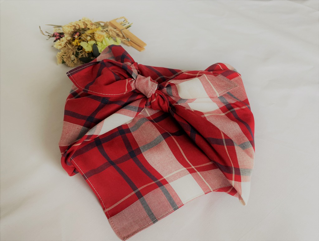 210902【播州織ふろしき レッド×ホワイト・チェック柄】50×50cm